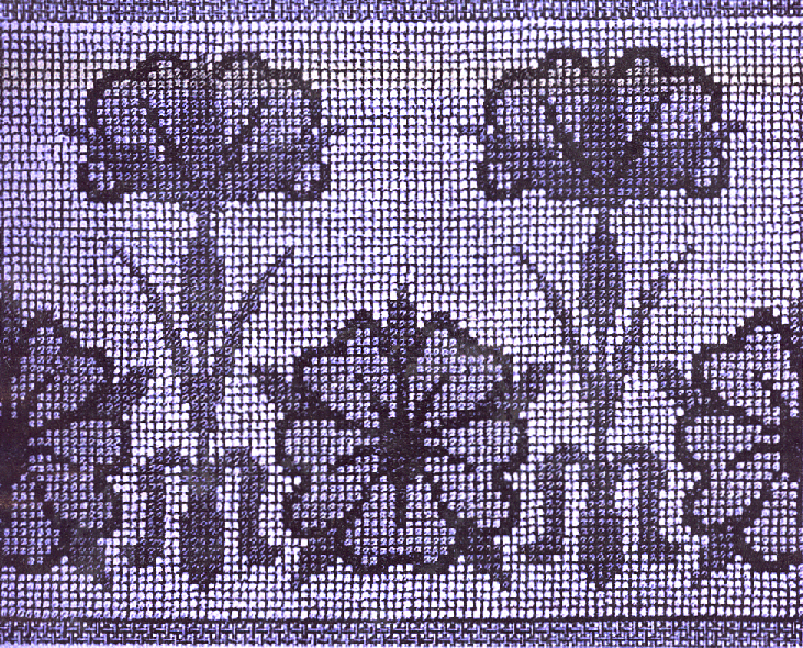 Cette bordure, composée de nielles ouvertes et en boutons, est entièrement brodée au petit point ; elle ne présente donc pas de difficultés d'exécution.