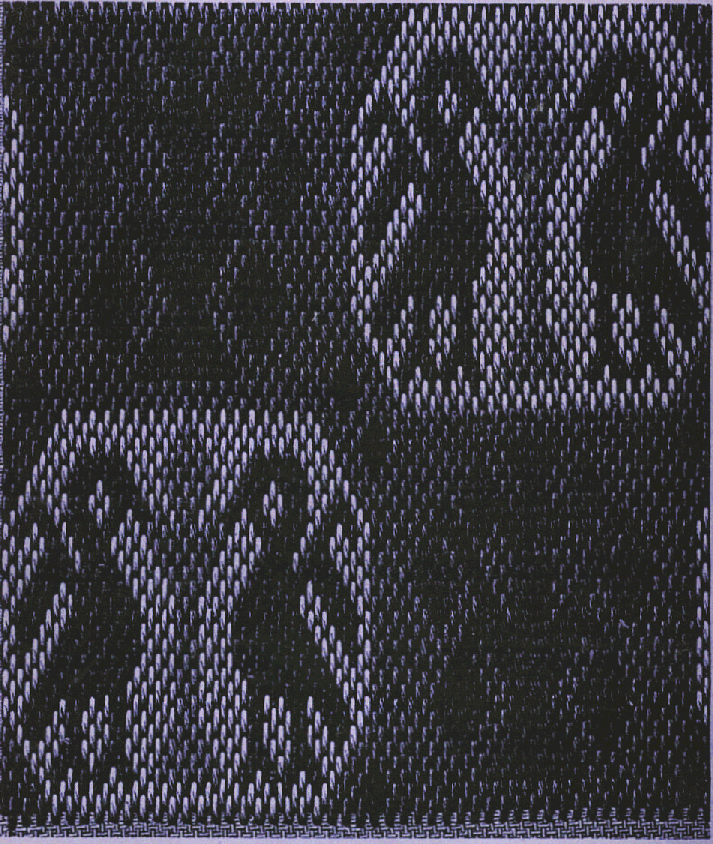 La broderie est exécutée sur un canevas uni, en soie floche, avec des points verticaux par-dessus quatre fils du tissu, travaillé en rangs horizontaux, que que le montre le dessin explicatif fig 2.