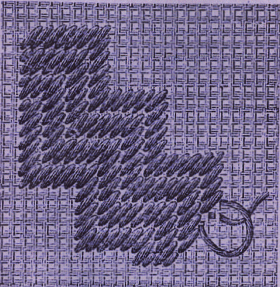 Similaire au point jacquard, la différence réside dans le fait que les deux files de points se font sur deux fils doubles ou sur quatre fils simples.