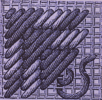 On fait quatre points dont le premier est lancé par-dessus un croisement de fils de canevas, le second par-dessus deux croisements, le troisième par-dessus trois croisements, le quatrième par-dessus quatre croisements. Ces quatre points forment des triangles, superposés les uns aux autres. Le vide qui se produit aux bord des rangs, est comblé par des points gobelins.