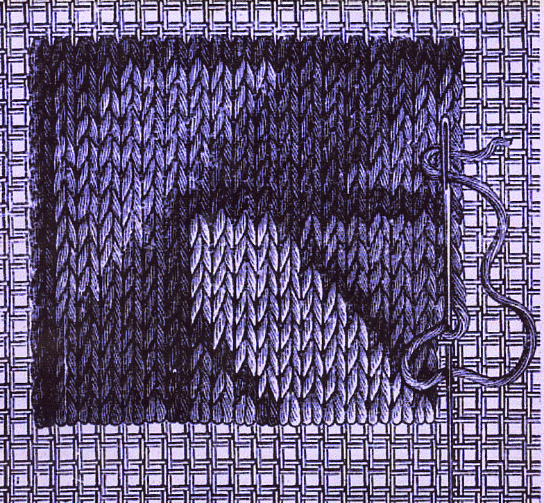 Ce genre de point est des plus avantageux pour les dessins à plusieurs couleurs, car on arrive mieux à les fondre les unes dans les autres. Le premier point est toujours complété par le second, et sa forme même contribue à adoucir le contraste des couleurs.