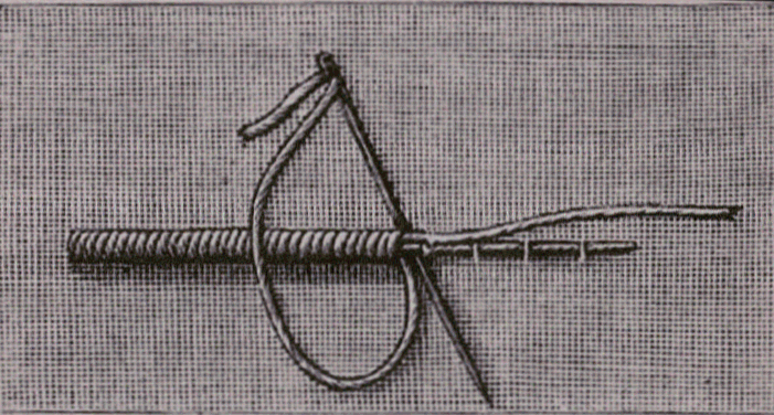 Ce point se fait également de gauche à droite par-dessus un tracé simple ; pour lui donner plus de relief, on pose sur la ligne tracée un fil rond et tordu, que l'on recouvre ensuite de points verticaux placés l'un à côté de l'autre. Ce genre de cordonnet est employé principalement pour la broderie de lettres et monogrammes.